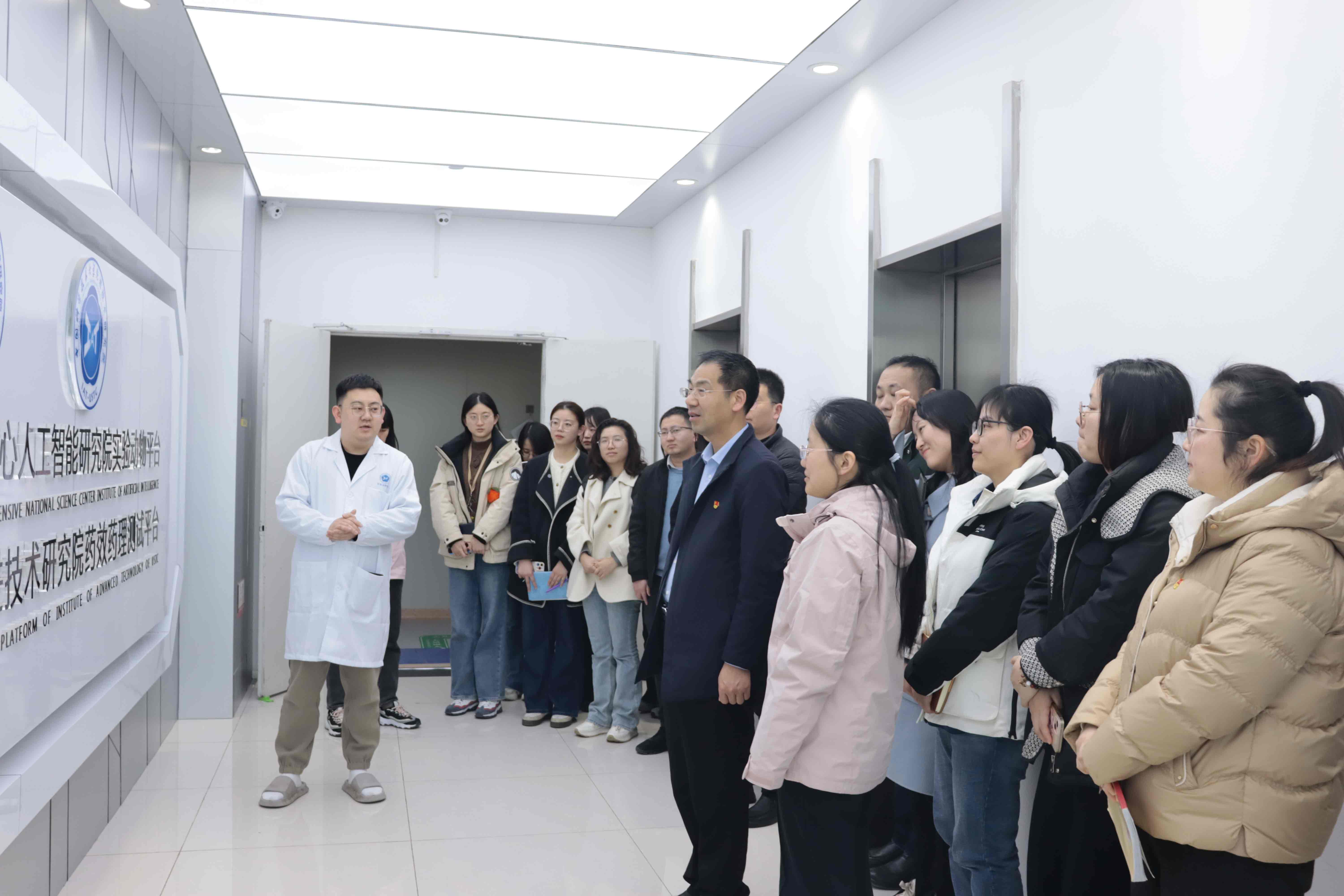 会前,党员及业务骨干参观了未来中心楼展厅、慧生楼动物实验房,全面了解先研院的发展历程、创新成果以及前沿科研方向。
